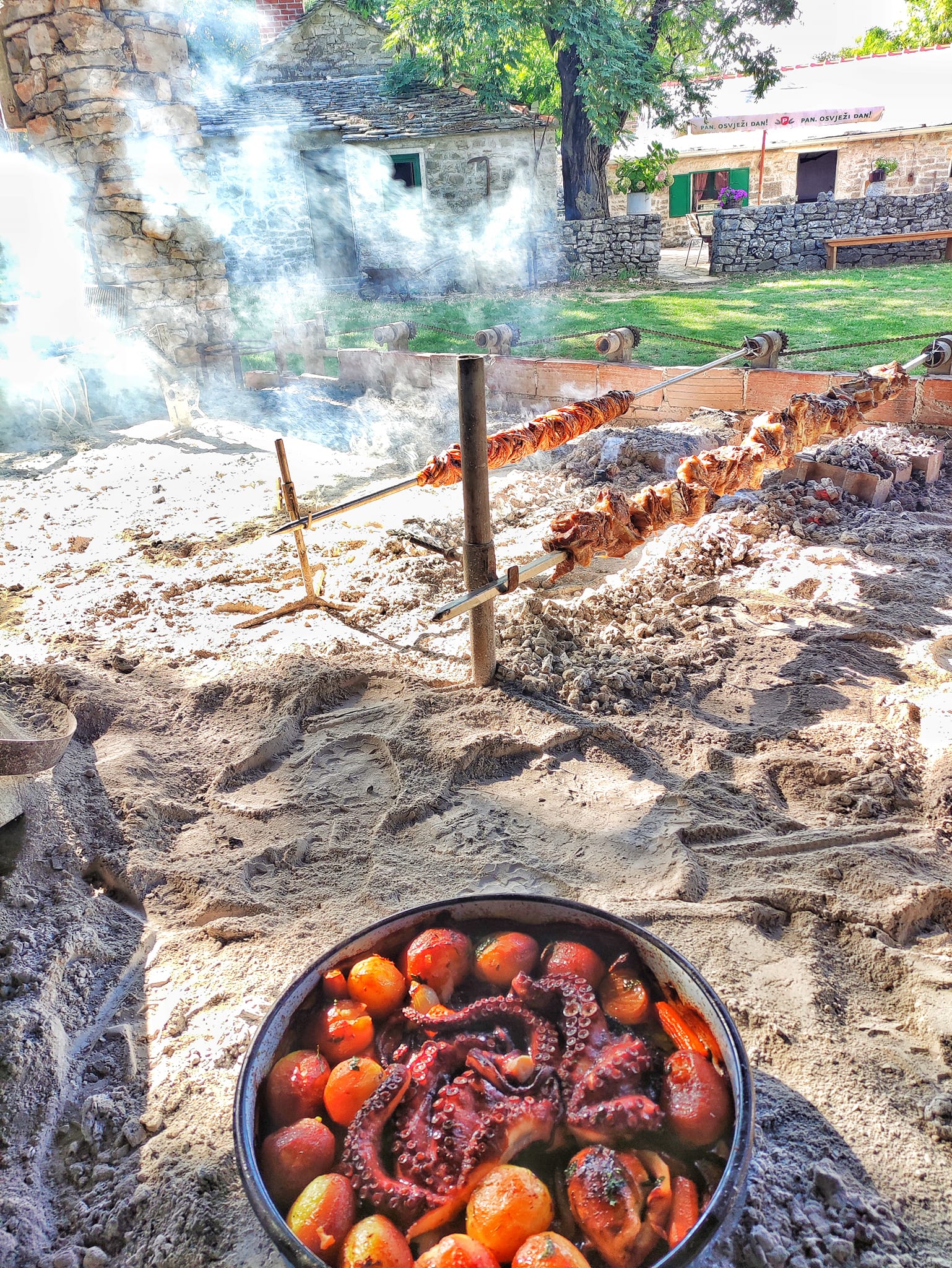 At Gažul village estate, there’s one star ingredient: lamb. Every dish is crafted around this centerpiece, showcasing a variety of culinary techniques to create several different dishes from this single ingredient. The eternal classic is grilled lamb, with up to 16 lambs roasting on spits at once. No part of the lamb is wasted; the offal is used to make vitalac, a dish once considered food for the poor but now revered as an authentic Brač specialty.